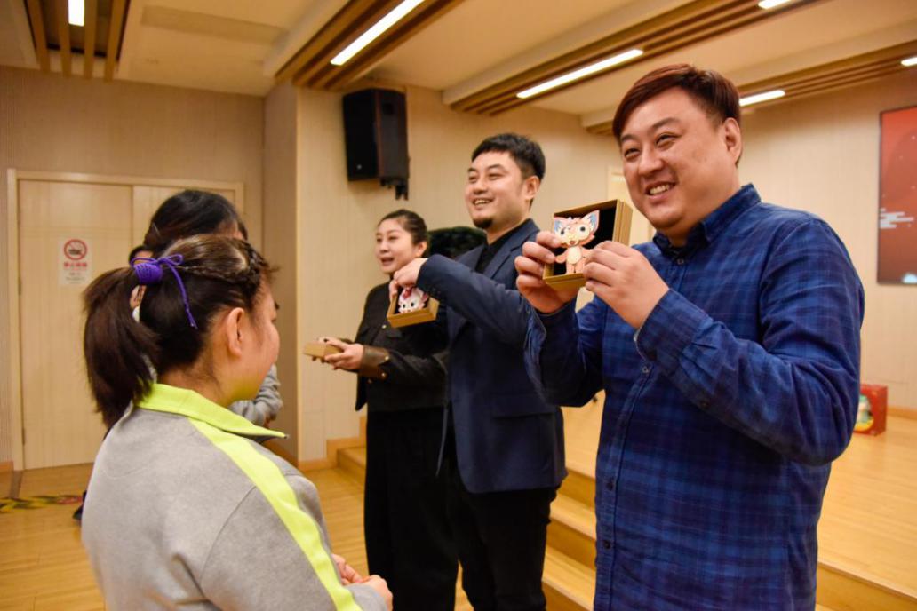 活動現場,陽光家園學員為來訪愛心企業表演了賀歲節目,愛心企業代表與陽光家園學員互贈了農歷蛇年新春禮物。