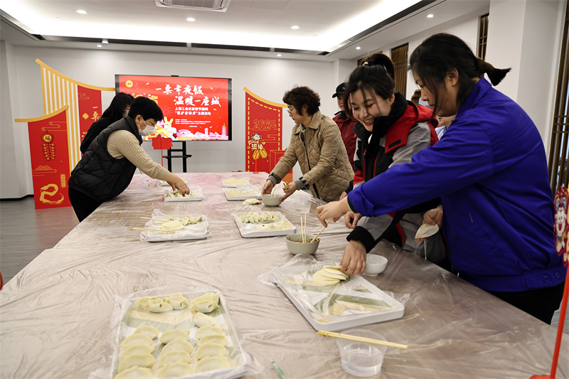 1月22日,正值北方傳統的小年夜,嘉定安亭老街戶外職工愛心接力站里張燈結彩、年味十足。隨著熱騰騰的餃子和一道道菜肴上桌,由上海市總工會主辦的“一桌年夜飯,溫暖一座城”活動溫馨啟幕,留滬的外來建設者和新就業形態勞動者代表們歡聚一堂,共同迎接新春的到來。