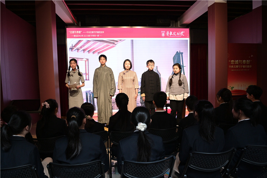 人民網上海2月17日電 (記者葛俊?。?月17日上午9點,上海靜安區一場別開生面的“開學第一課”在中共中央秘書處機關舊址紀念館開講。一群來自靜安區教育學院附屬學校的學生,正在聚精會神地聆聽一堂紅色場館中的大思政課——“忠誠與奉獻”中央文庫守護者的故事。這,是靜安區首次在紅色場館中舉行“開學第一課”。