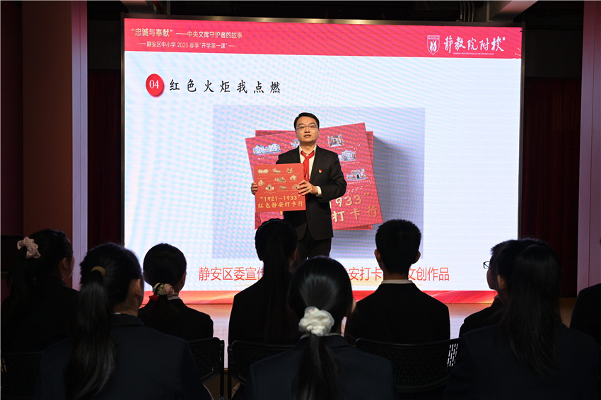 據悉,2025年春季開學日,靜安全區96所中小學的“開學第一課”中都凸顯了紅色文化元素,其中以紅色文化為主題的課程有100個,覆蓋青少年學生 8.4萬余人,以潤物無聲的方式,將紅色文化有機融入“大思政課”,推動紅色文化在青少年心中落地生根。