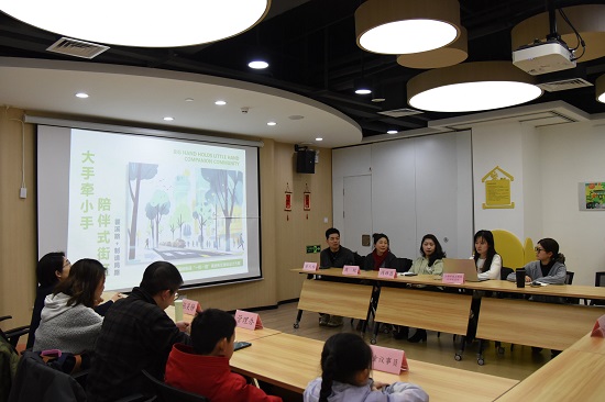 實踐站駐站人大代表、上海市陽光善行公益事務中心總干事秦天棟通過可視化地圖的形式介紹了“一街一路”項目建設過程中關于景觀提升,功能改造等內容,并著重向“吾童”議事員們分享了完善兒童友好社區建設的美好愿景。