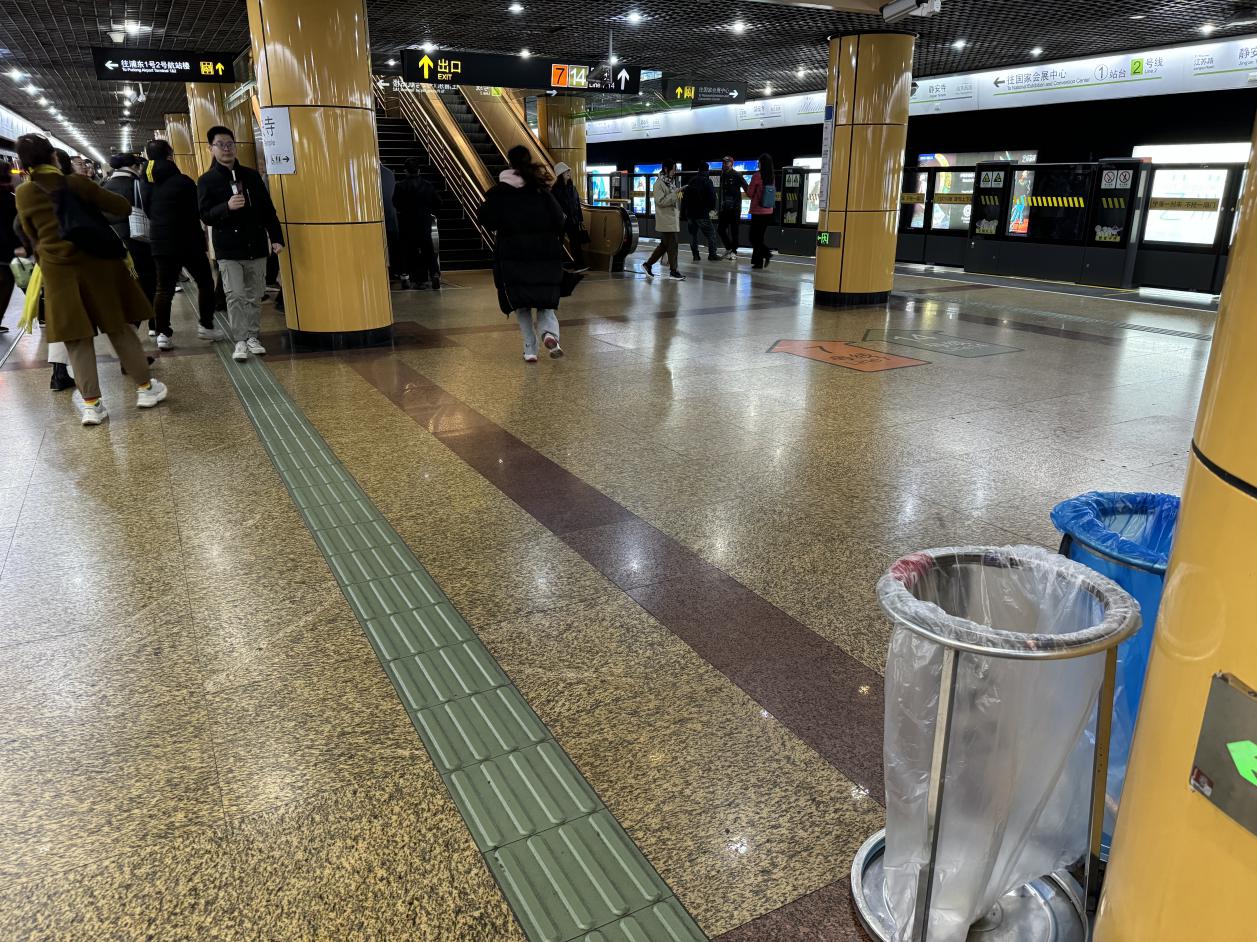 該網友表示,乘坐地鐵期間,在地鐵站內未找到垃圾桶,無奈帶著垃圾乘了3站地鐵,下車后,在站內亦是搜尋垃圾桶無果,后經觀察,在地鐵站廳層找到一組垃圾桶,且位置十分隱蔽,不符合人流路徑及乘客習慣。