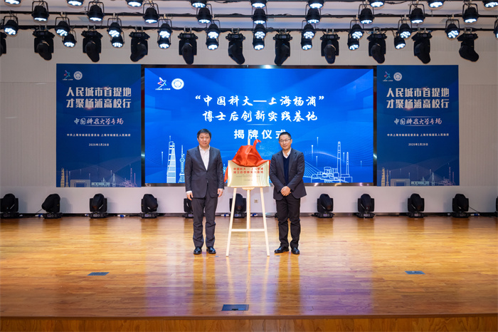 活動中,周海鷹、周叢照共同為中國科大—上海楊浦博士后創新實踐基地揭牌。中國科大依托頂尖學科集群、高層次人才梯隊和高效能成果轉化體系,成為創新驅動發展的重要策源地。楊浦區則圍繞以博士后創新實踐基地為代表的產學研協作示范平臺,構建起了“高校智力輸出-企業需求牽引-政府平臺支撐”融合機制,為區域經濟社會發展注入了源源不斷的創新動能。