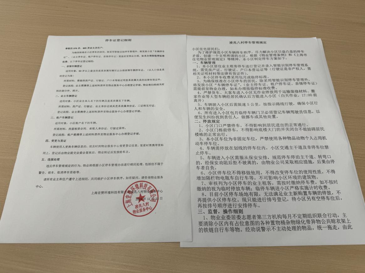 凌八居民區制定的《停車證登記細則》和《停車管理規定》。人民網記者 龔莎攝