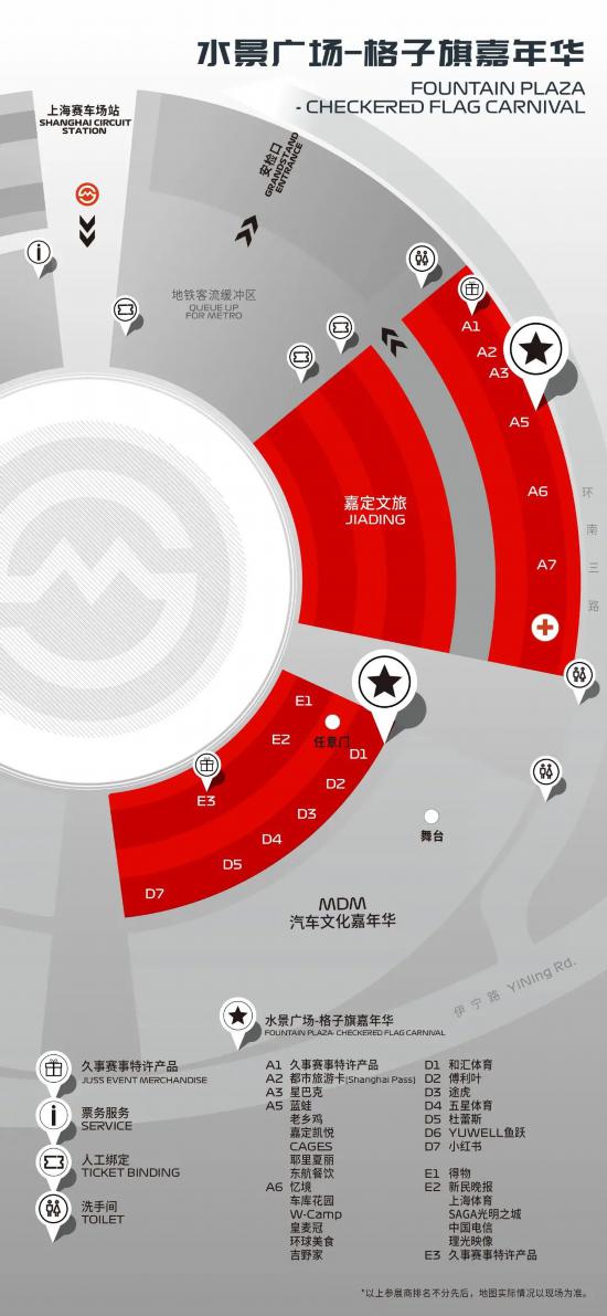 1號檢票口外的“水景廣場-格子旗嘉年華”則向所有人敞開大門,無需購票,也可感受F1賽事的震撼氛圍!玲瑯滿目的展位,絕對讓你目不暇接!