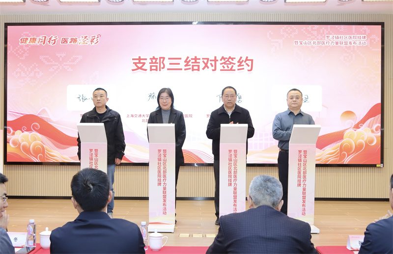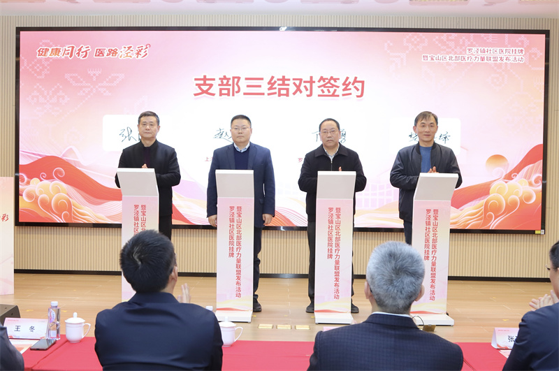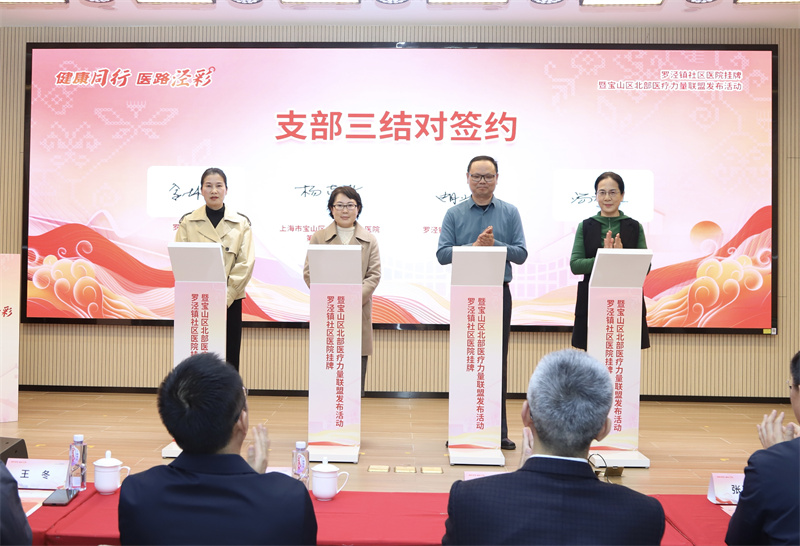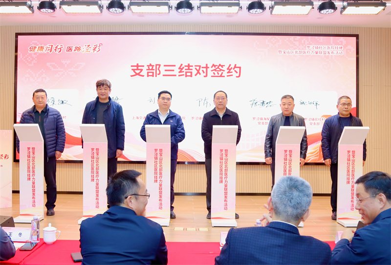 現場,瑞金醫院、華山醫院、第九人民醫院、區中西醫結合醫院、羅店醫院等5家市、區醫院黨支部與羅涇鎮社區衛生服務中心黨支部及羅涇鎮12個村黨支部簽署“三結對”共建協議,通過黨建引領,促進基層醫療資源的深度融合與緊密協作。作為寶山區首家掛牌的基層社區醫院,羅涇鎮社區醫院以“一核十二站”服務體系為核心,融合全專結合診療、家庭醫生簽約服務和智慧醫療等模式,借助寶山區北部醫療力量聯盟力量,努力實現羅涇鎮鄉村居民“小病不出鎮、大病不出區”。