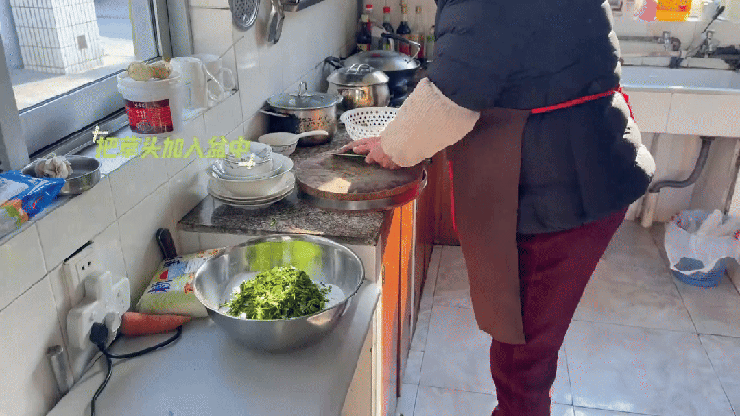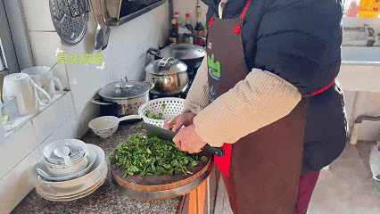 草頭清洗干凈后切碎,倒入糯米粉中。