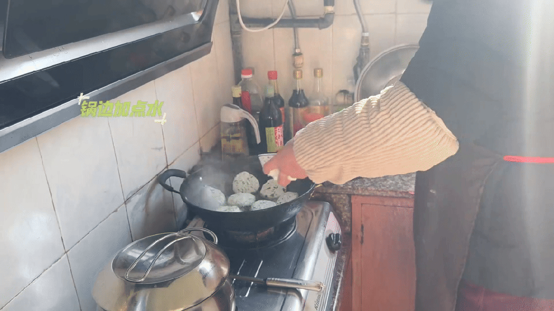 加一碗清水蓋上鍋蓋燜煮,待水收干時揭開鍋蓋翻面。
