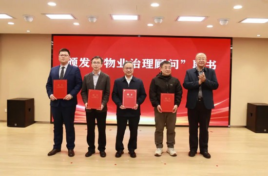 會上,史文卿為人民網上海頻道黨支部書記、總經理金煜純,上海市委黨校社會學教研部主任、教授何海兵,上海市社會建設研究會副會長羅新忠,上海市鳳凰律師事務所高級合伙人湯煒華頒發了物業治理顧問聘書。