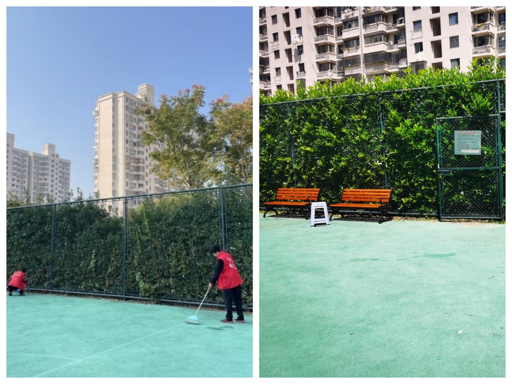 此外,小區內的路燈也全面煥新升級,璀璨的燈光照亮了居民出行之路;對小區道路彎角,樓前樓后荒僻角落、地塊也進行修繕、整理、補綠、種綠,積極推進垂直綠化建設,更大程度地改善了小區的綠化環境;籃球場周邊區域,增設了休閑座椅,讓居民在享受運動樂趣的同時,也能“坐”享幸福時光。