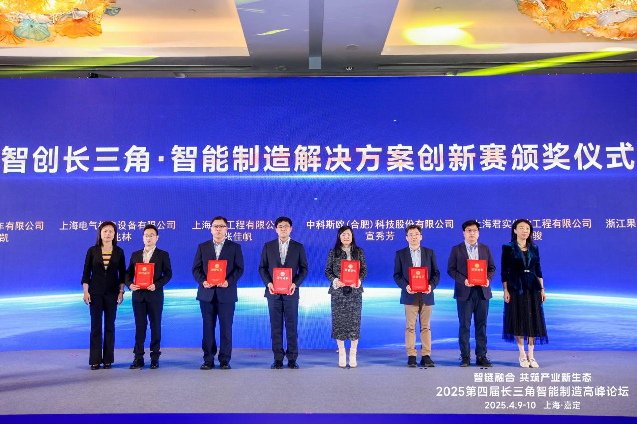 會上,對榮獲智創長三角·智能制造解決方案創新賽的6位獲獎代表進行了表彰和授牌。論壇上還舉行了長三角智能工廠全景探訪啟幕儀式。