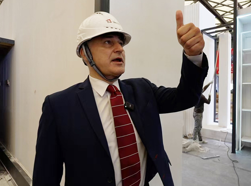 邁克爾在展覽會籌備現場。 受訪者供圖
