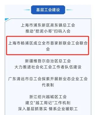 全國總工會發布全國工會重點工作創新案例(2024年第1期),上海市楊浦區的案例“上海市楊浦區成立全市首家新聯會工會聯合會”上榜。