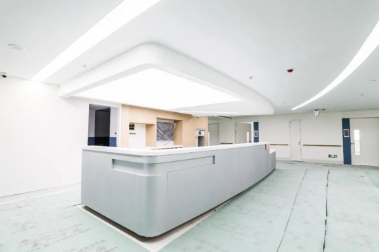 在新華醫院奉賢院區項目的工地上,院區的主體結構已然成型,而在建筑內部,病房寬敞明亮、簡潔現代的裝修令人舒心。