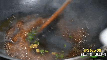 加入蠔油、老抽、生抽、水淀粉,撒入小蔥,調料汁。調好的料汁澆至蒸熟后的羊肚菌上即可。