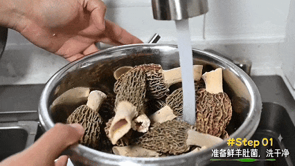 材料:羊肚菌、豬肉、鹽、糖、白胡椒粉、淀粉、蠔油、老抽、生抽、小蔥