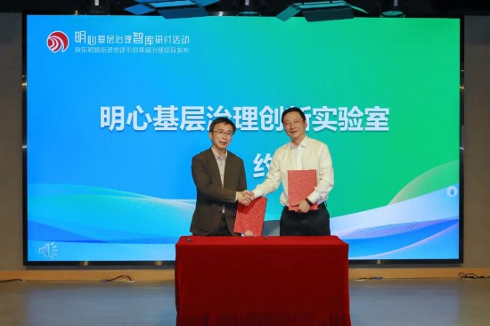 圍繞社區治理的理論創新、方法創新、實踐創新,為進一步賦能提升居民關切的治理項目,人民網上海分公司總經理、上海頻道負責人金煜純與街道黨工委委員、辦事處副主任韓云志簽訂合作協議,共建“明心基層治理創新實驗室”,整合資源助力東明高質量發展。