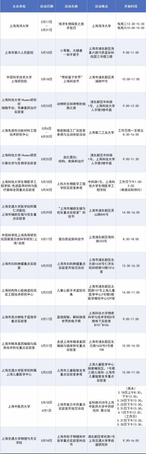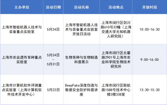 上海市科委介紹,5月17日至31日上??萍脊澠陂g,我市多家科技創新平臺基地對外開放,并舉辦主題活動。透過“電子眼”窺探微觀世界的奧秘、走進神秘的“真菌王國”探索蘑菇生長的神奇“視”界、與智能機器人親密互動體驗未來科技的最新成果……實驗室接待能力有限,報名先報先得。點擊文末左下角“閱讀原文”查看預約詳情。詳見↓