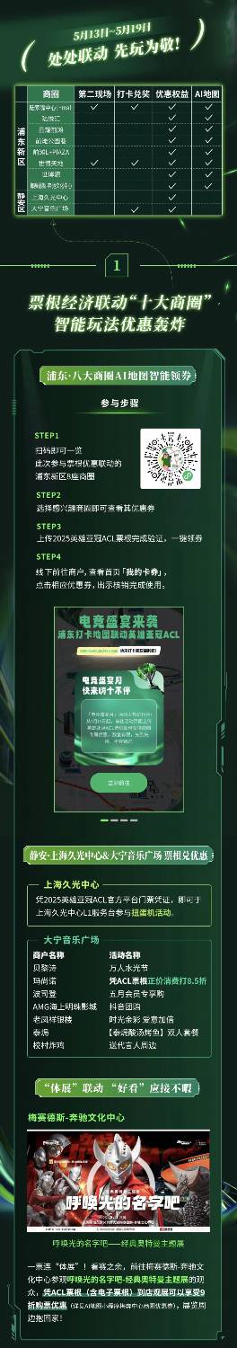 本屆英雄亞冠ACL賽事以電競為核心,進一步深化體育與文旅、消費、科技等多元場景的深度融合,充分釋放“文旅商體展”聯動主體的資源潛力。比賽期間,主辦方將聯動三大場館周邊的10大商圈,開展“票根優惠”“AI地圖領券”“第二現場觀賽”“打卡集章兌獎”等一系列組合創新活動,吸引人流、促進消費。