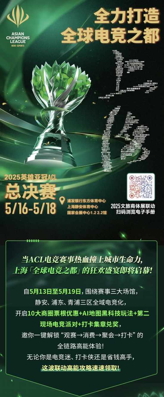 2025英雄亞冠ACL總決賽的舉辦,不僅將鞏固上海作為“全球電競之都”的地位,通過賽事IP與城市基因的深度綁定,為電競賽事模式創新提供實踐范本,更通過“文旅商體展”聯動,進一步擴大賽事輻射人群、提升消費熱情,為區域經濟注入新動能。