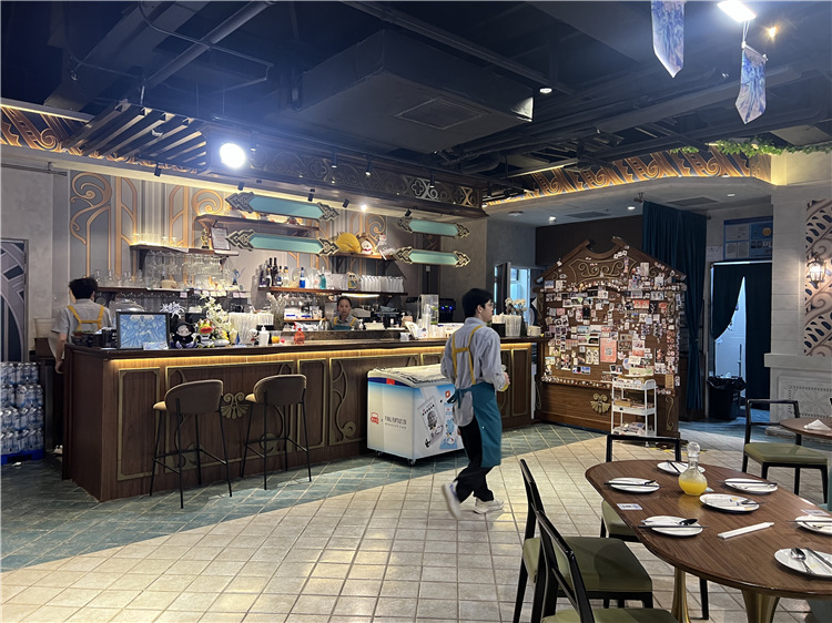 引入知名IP“最終幻想14”主題的海德林咖啡餐廳,打造沉浸式潮玩體驗空間。位于四樓的海德林咖啡餐廳,隨處可見FF14元素。松神文化(香港)有限公司董事總經理沈侃透露,該餐廳工作日以本地客群為主,周末外地游客占比達30%-40%。店慶期間單日營業額達6—7萬?!安蛷d需要提前15天預約,本次端午節期間的預約名額已滿?!边@也進一步驗證了業態調改的成效。