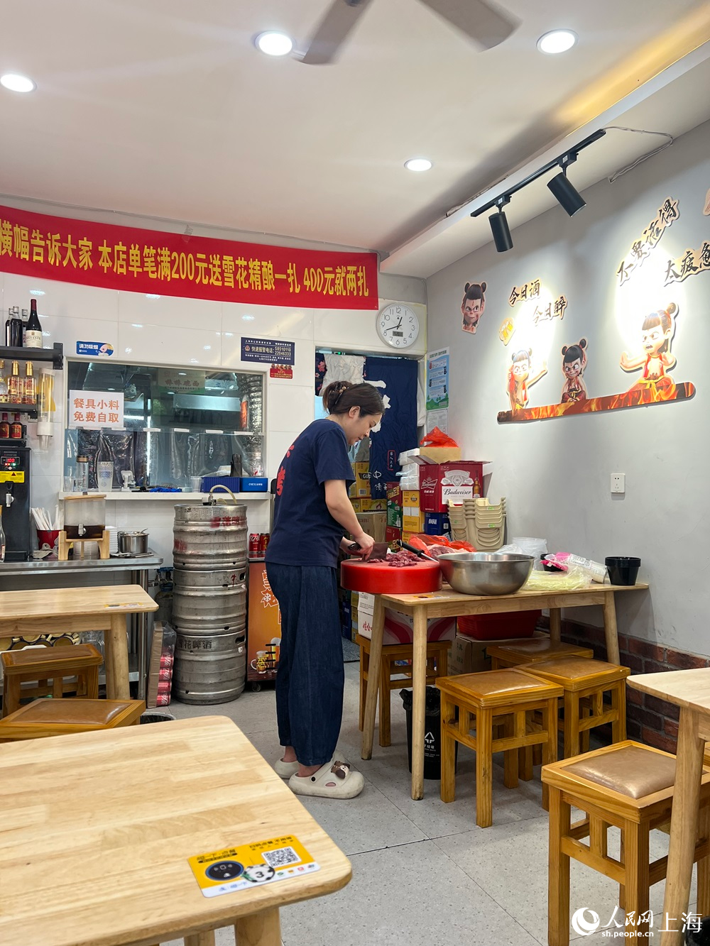 徐姐正在切肉,為晚上的營業做著準備。人民網記者 沐一帆攝