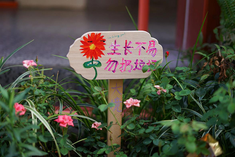 西凌第一幼兒園的小朋友們,還為小花壇手繪了亞克力牌,許下他們對這條街區花壇的小小期待。