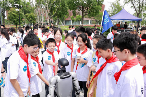 人民網上海5月25日電 昨天,奉賢新城在水一方科幻館迎來了一場別開生面的青少年科普盛宴——“未來學院·科幻奇旅”十萬個為什么探索實踐活動?;顒右浴翱苹?科普”為核心,通過沉浸式漫行、互動打卡、科技體驗等形式,帶領100名青少年在1公里的環線旅程中,感受科學魅力,點燃探索熱情?,F場,前沿科技與孩子們互動,機器人 “閃現”,無人車 “助陣”。同時,在水一方科幻館與上海少年兒童出版社共同發布了“十萬個未來”新型科普IP。