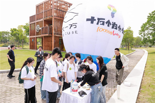接下來,青少年們來到 “新青年驛站”,體驗熱氣球狀的氣模打卡裝置,將自己的問題放入熱氣球中,感受生態、活力與科幻的結合。