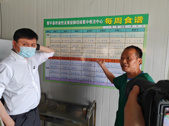 基層醫生周仕陽向張文宏團隊介紹結核病患者餐食營養情況。