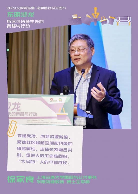上海交通大學國際與公共事務學院特聘教授、博士生導師徐家良對上半場沙龍進行了專家點評,將東明實踐概括為了“領導、引導、生長、參與、創造、活力、生態”幾個關鍵詞。表示東明在黨建支持下,內外資源將社區進行銜接,體現超越空間和功能的情感屬性,主體關系融合共創,促進人的主體性回歸及“大寫的”人的個體成長。
