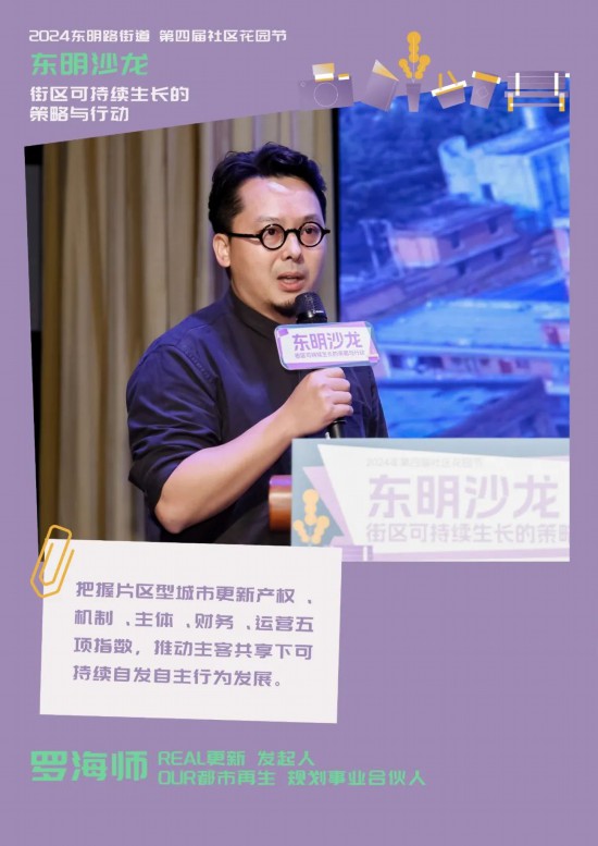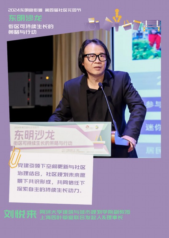 同濟大學建筑與城市規劃學院副教授、上海四葉草堂聯合發起人&理事長劉悅來分享了對東明路街道自2020年至今,經多年耕耘建立的基于社區花園的社區參與式發展方法。以靈巖南路農工商超市附近的公共空間為例,強調共融共建共享的重要性。在黨建引領下,東明路街道正在將空間更新與社區治理結合起來,持續探索共建共治共享的社會治理創新路徑,并在進一步嘗試構建多方共益的街區可持續生長策略。