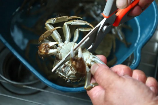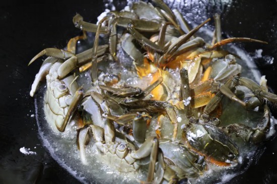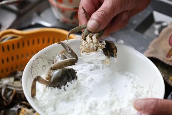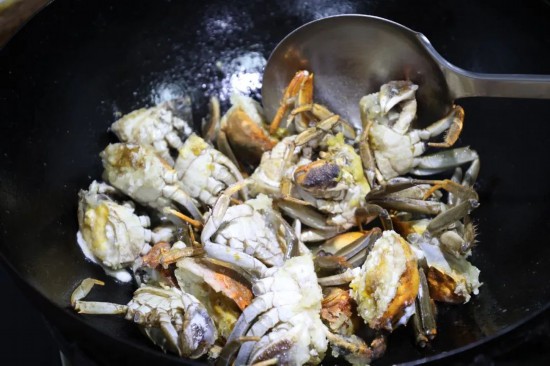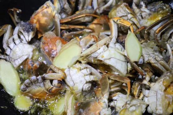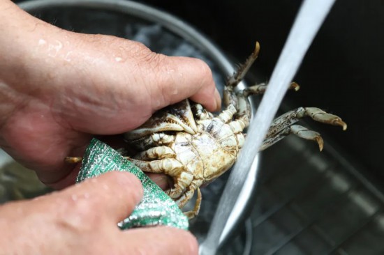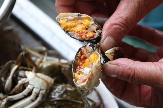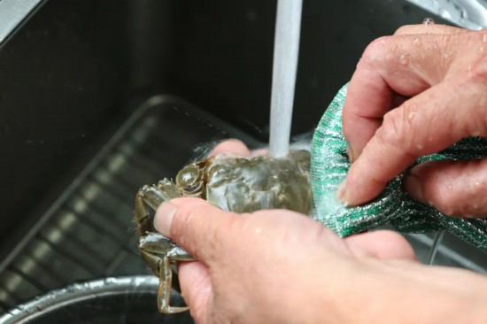 1.處理六月黃:用刷子把六月黃表面刷洗干凈,蟹對半剪開。