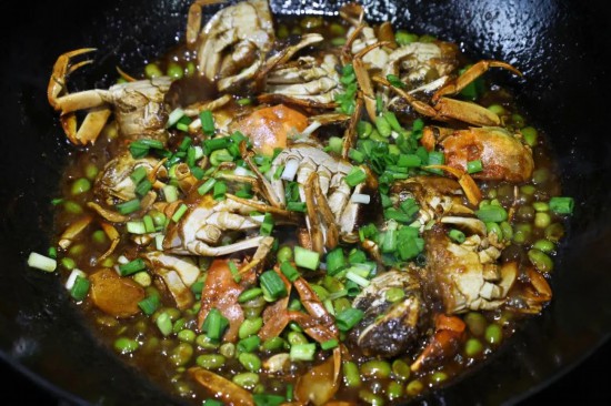 6.大火收汁,撒上蔥花點綴,一道鮮香四溢的六月黃炒毛豆就大功告成啦!