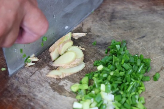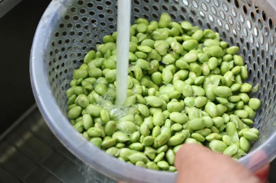 2.蔥切段、姜切絲;毛豆洗凈瀝干水分備用。
