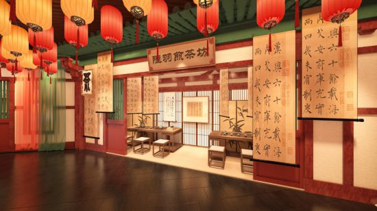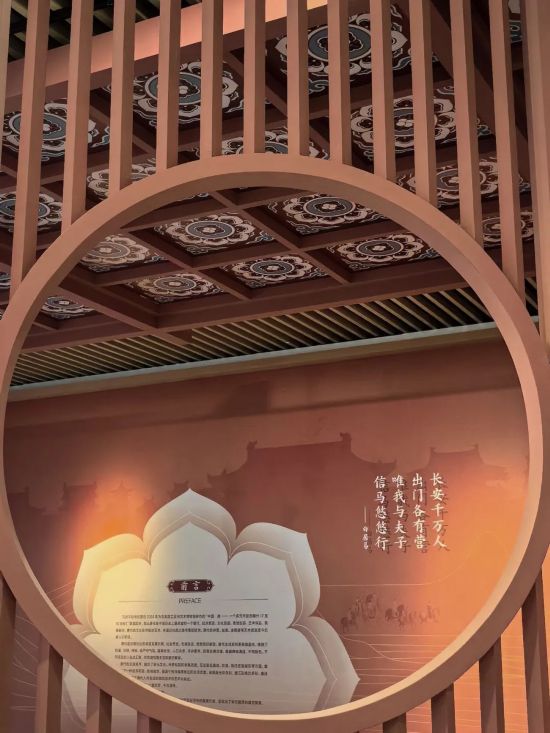 在展廳尾廳還會打造“唐代西市·沉浸式社教體驗區”,立體還原唐代商貿經濟活動中心“西市”的場景,設置多個體驗工坊,涵蓋李白酒肆、杜甫書齋、陸羽茶坊、香坊、弈趣館、唐風劇場等,帶你全方位體驗唐代詩酒、書法、茶道、香道、服飾妝容等生活文化。