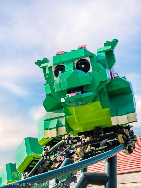 全球首發的樂高大飛車是上海樂高樂園度假區最長的過山車,軌道總長530米,游客可以搭乘樂高大飛車,穿梭在巨型樂高積木雕塑之間,與“搭搭”并肩翱翔中開啟樂高樂園全新亮相的刺激之旅。