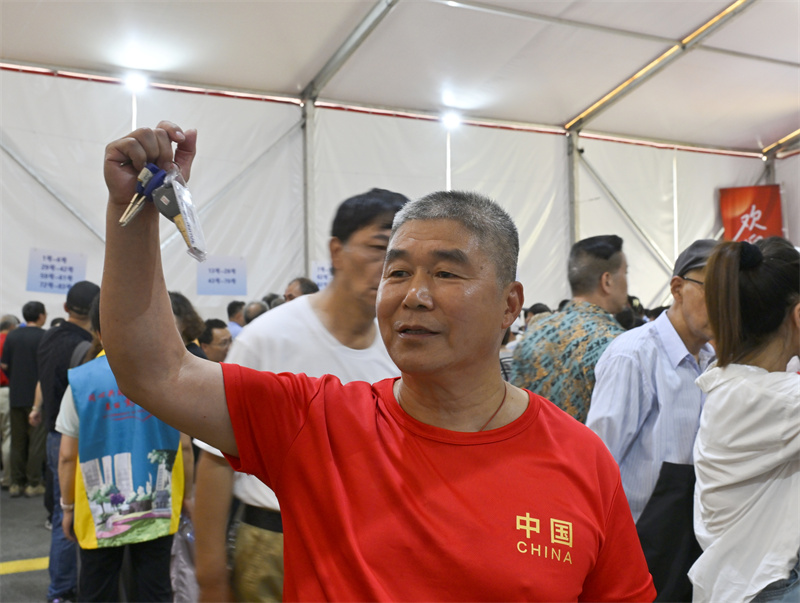 第一個拿到鑰匙的彭一小區居民。靜安區新聞辦供圖