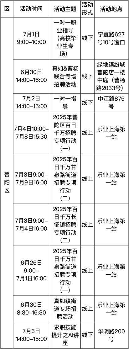 “樂業上海優+”行動進行中!市人社局介紹,為了更好地幫助大家拓寬就業機會,提供更優質的公共就業服務舉措,全市104場就業服務活動,喊你來參加!詳見↓