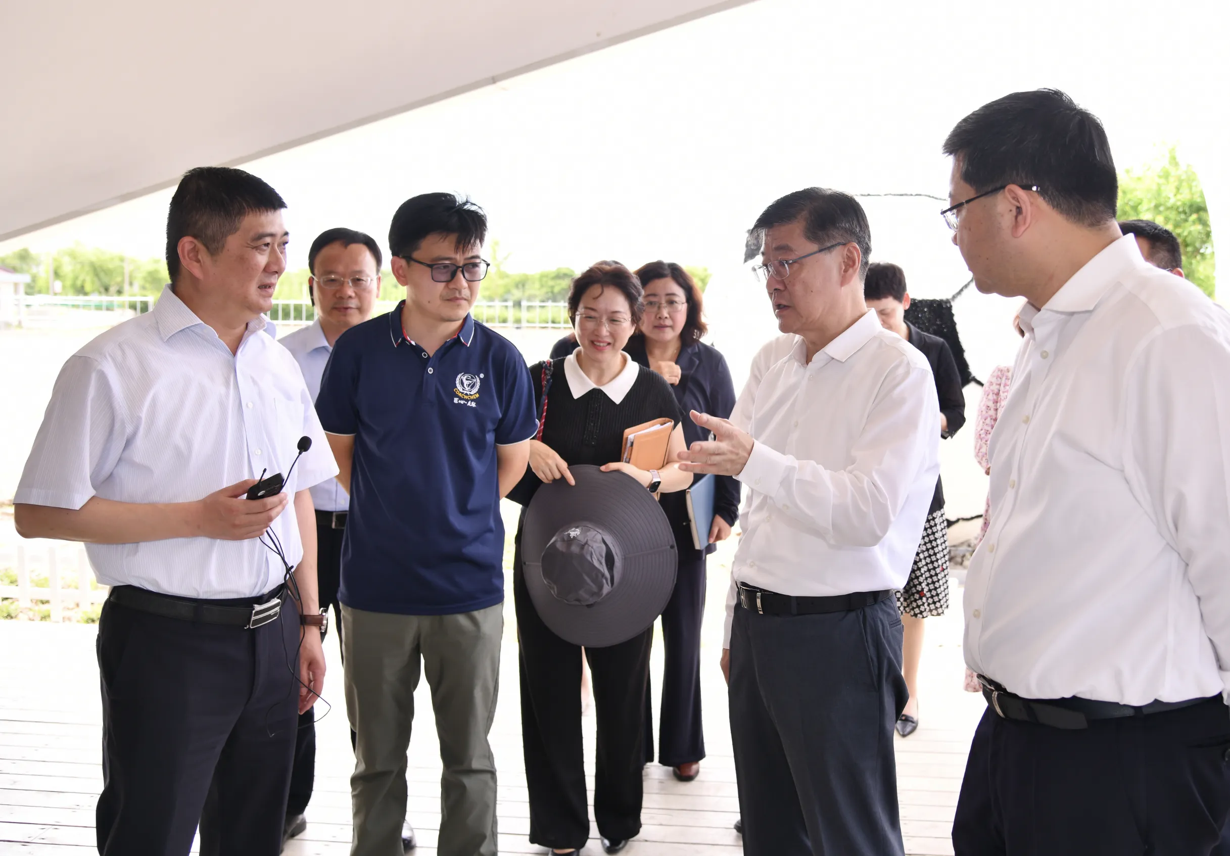 在漕涇鎮悅野足球樂園,劉健聽取以賽事為契機,聯動體育、文化、農業等領域賦能鄉村振興的合作模式匯報;在數字游民國際村,聽取數字游民賦能鄉村振興的模式和帶動情況匯報;在中草藥科普園,實地察看中草藥種植和科普教育于一體的“田埂課堂”實踐模式。