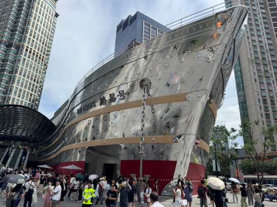 LV“路易號”巨輪為全球最大的奢侈品集團路威酩軒(LVMH)旗下路易威登(LV)品牌在上海設立的全新概念地標,獨特的造型為全球唯一,它融合“展覽+文創+咖啡”三種業態,集首發經濟“首展+首店+首秀”三重維度于一身。