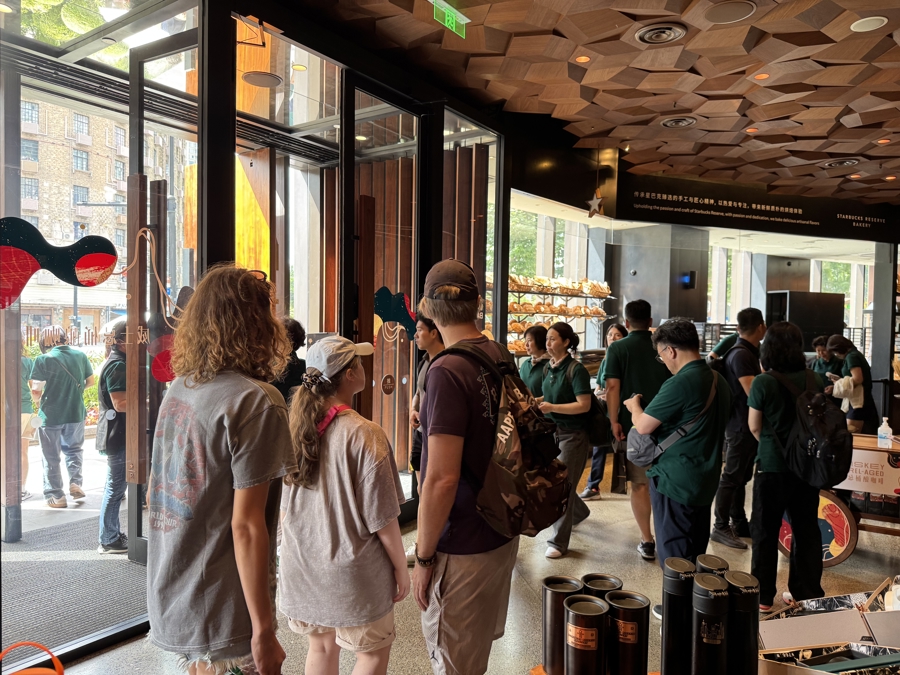 星巴克臻選工坊吸引大量游客,穿著綠色T恤的為韓國旅游團。