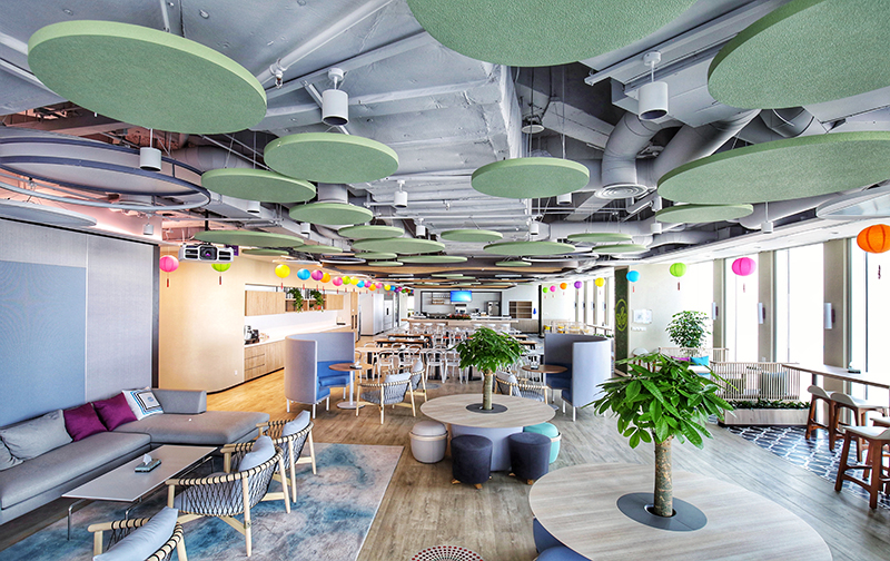 辦公室設有健身房、桌球室、按摩椅……咖啡吧隨時提供現做的花式咖啡和健康小食,還有各色中外早餐、健康午餐供應。員工點單不用花錢,每月有一定的額度,直接從門卡里扣積點。