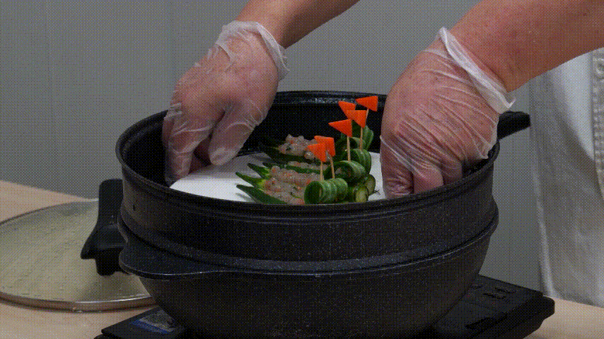 6. 開啟蒸鍋,蒸8分鐘左右。