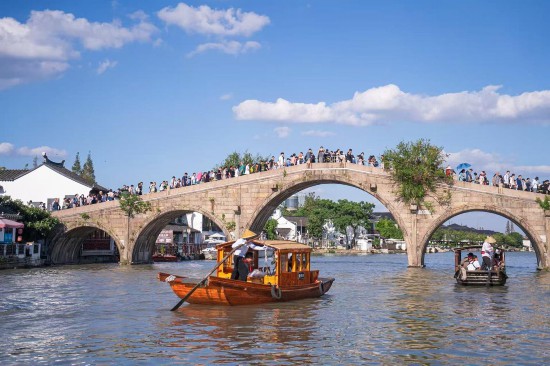 “朱家角是上海保存最完整的江南水鄉古鎮?!鼻嗥謪^朱家角鎮黨群辦主任孫莉婷說,“上海已成為‘中國入境旅游第一站’,朱家角自然也‘水漲船高’,成為最受海外游客青睞的古鎮‘第一站’。來到朱家角,不僅能體驗江南風范,也很有生活體驗感?!?024年,朱家角接待游客570萬人次,其中境外游客占比約30%。2025年第一季度,已接待入境游客近30萬人次。