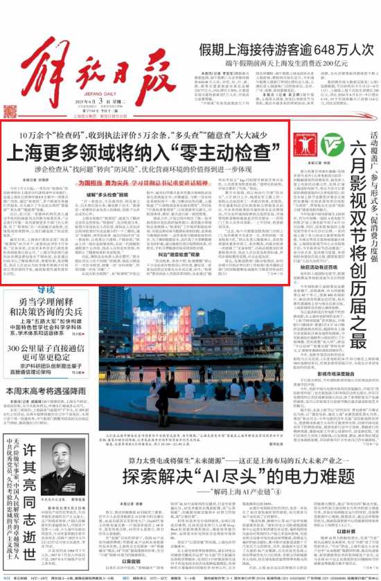 “檢查碼”并不是終點。上海還在更進一步地探索更為高效精準的監管手段——在“無事不擾、無處不在”的基礎上探索“無感監管”試點。未來的監管,有可能像馬路上的巡警,平時未必能看到,一旦發生危險或出現違法現象,卻會第一時間出現在現場,真正做到“無事不擾、有事必應”。