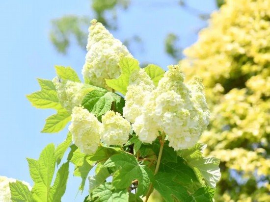 櫟葉繡球和圓錐繡球花擠擠挨挨,