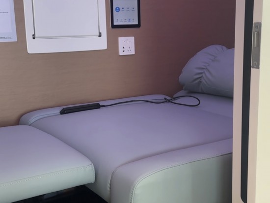 浦東機場在T1、T2航站樓的國際、港澳臺出發候機區,已全新打造30個休息艙點位,分別位于T1的24號登機口和T2的67號登機口附近,配備了可調節至平躺的軟座沙發、獨立新風系統、收拉式小桌板、儀容鏡、充電接口等,環境燈光亮度也可按需調節。