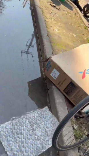 炎炎夏日,永泰路與楊高南路交界的商鋪之間,一道令人不安的污水正悄然滲出,在自行車行與社區團購超市的墻根處肆意蔓延,腥臭彌漫,行人不得不掩鼻繞行。