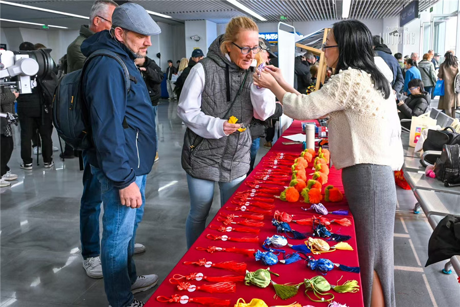 3月16日,隨郵輪入境的外籍游客。寶山區濱江委供圖
